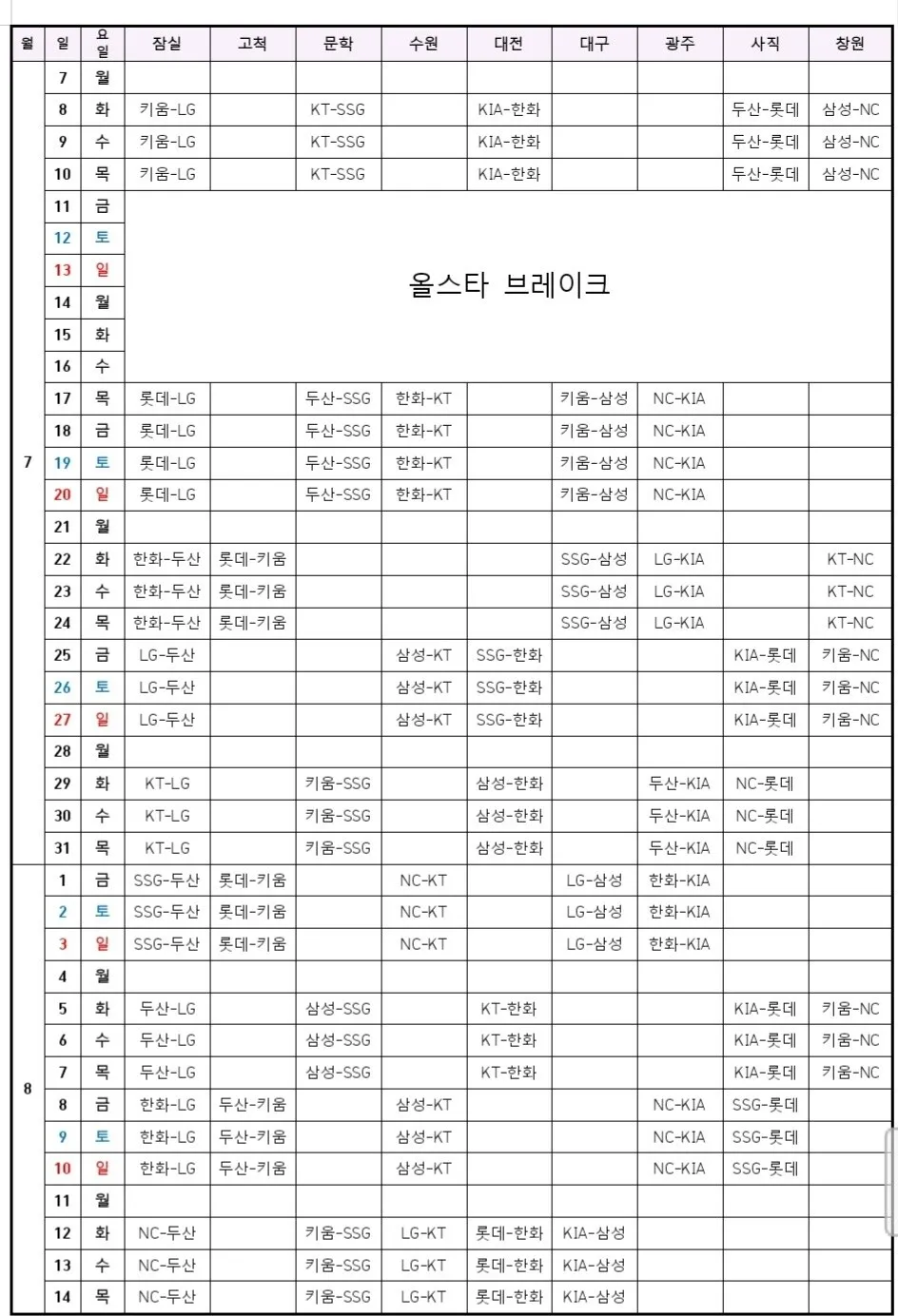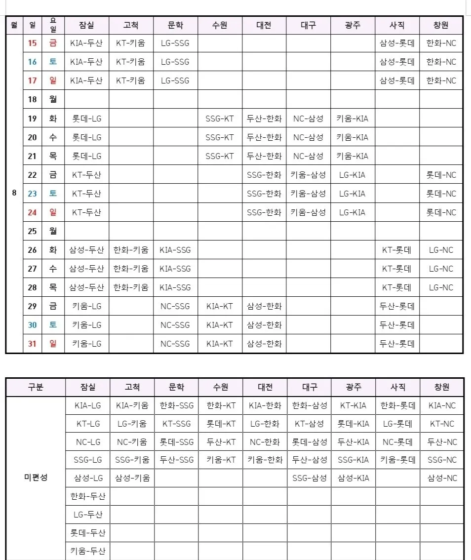 한여름 폭염을 고려해, 7~8월 동안 일부 경기의 시작 시간이 조정됩니다. 기존에는 오후 5시 시작이 일반적이었지만, 더위를 피하기 위해 일부 경기들은 오후 6시 이후로 변경될 가능성이 큽니다.